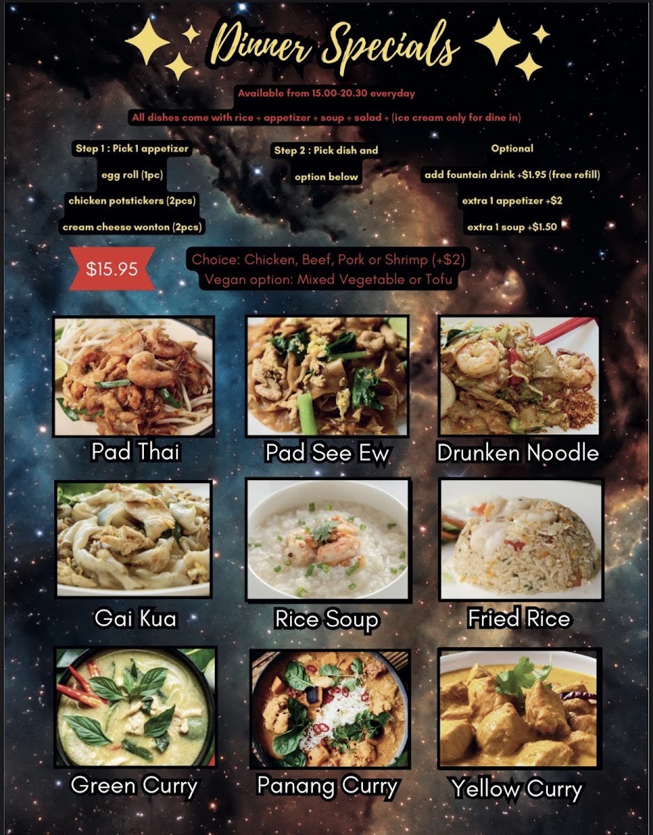 Step inside and be enveloped by the rich aromas of Thai spices, and the vibrant colors of the dishes that grace the menu. One bite of their Tom Yum Soup will have you swooning—this signature dish features a perfectly balanced hot and sour broth, infused with aromatic hints of lemongrass, kaffir lime leaves, and a medley of fresh seafood, creating a sensational symphony of flavors.